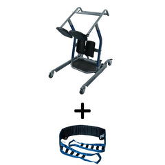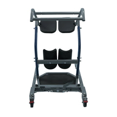 Patients qualified to use the Standing Transfer Aid must have adequate arm strength to pull themselves upward and enough leg strength to support their own weight into a standing position. Patients who meet these criteria and have difficulty walking will find the Stand Aid a useful and safe transfer/transport device. Once the patient has positioned themselves on board the split seat can easily be placed securely and allow the resident to sit comfortably while a caregiver performs the transport or transfer.