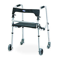 Features a comfortable flip-up seat and built-in carrying handle, durable front 5" fixed wheels, rear spring-loaded SureGlide...
